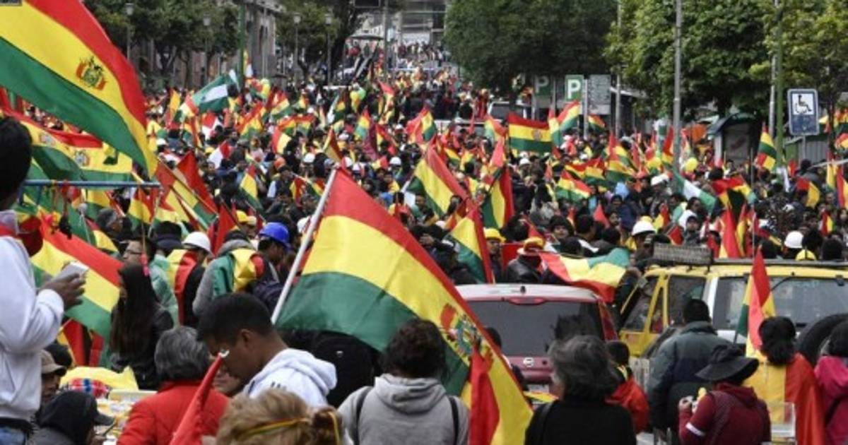 Inmediatamente después del anuncio, las calles de La Paz se convirtieron en un carnaval, con el estallido de petardos y miles de manifestantes ondeando banderas tricolores bolivianas (rojo, amarillo y verde). Foto: AP 10/11/2019 - 00:005 / 8 -