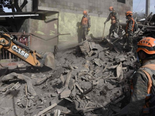 Bomberos, soldados y policías se abren paso entre los techos de decenas de casas arrasadas por el deslave de lodo y ceniza ardiente que el domingo provocó el pánico en los guatemaltecos. 06/06/2018 - 00:0012 / 21 -