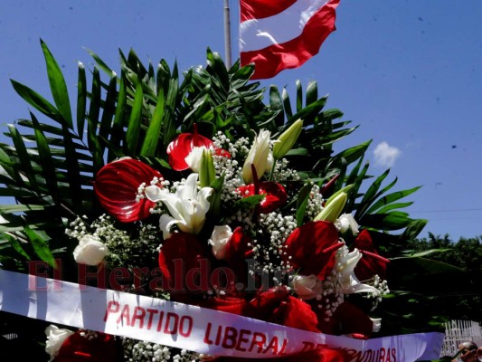 Rodeado de personas y coloridas flores le rindieron tributo a Roberto 'Pelón' Acosta en el Consejo Central Ejecutivo del Partido Liberal.Foto: Estalin Irías/EL HERALDO. 05/07/2019 - 00:008 / 13 -