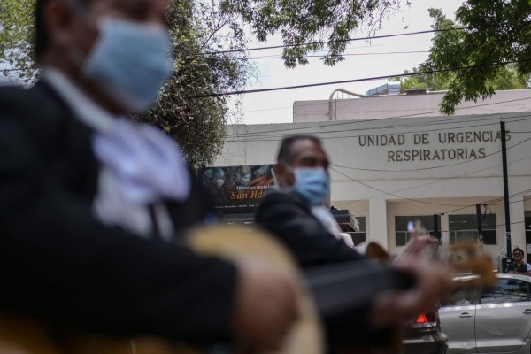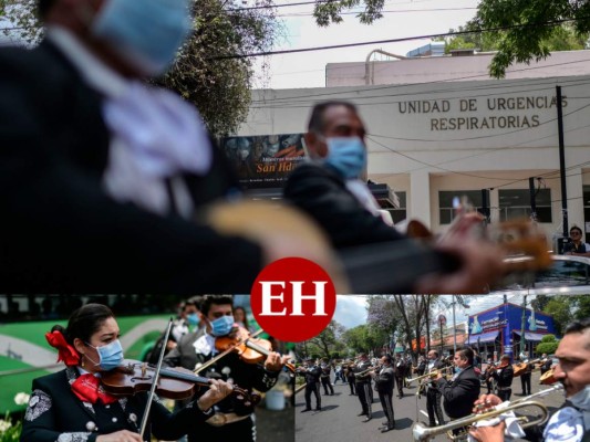 FOTOS: Mariachis animan a pacientes con Covid-19 frente a hospital en México