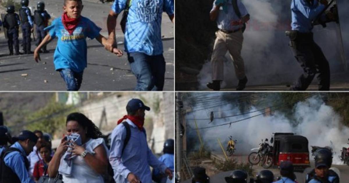 FOTOS: Momento en el que policías lanzan gas lacrimógeno a manifestantes de la aldea Yaguacire