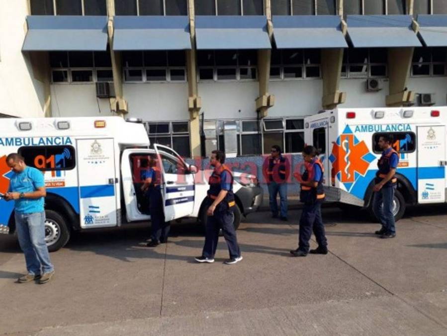Colegas del Cuerpo de Bomberos ayudaron a movilizar las camillas hasta las ambulancias. Los tres apagafuegos fueron llevados a la Fuerza Aéra Hondureña. 29/04/2018 - 00:005 / 15 -