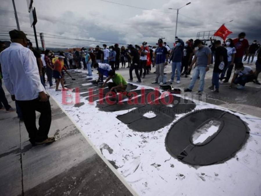 La nueva frase, con enormes letras, se visualiza a los lejos en el pavimento del bulevar Suyapa. 19/08/2020 - 00:004 / 15 -