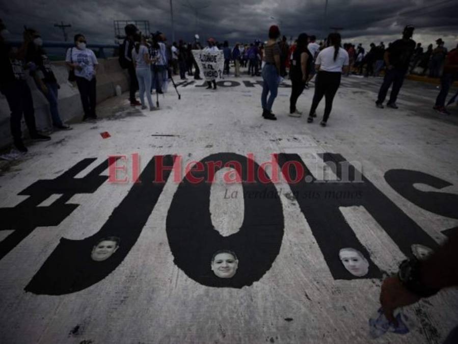 El puente Paz y Esperanza del bulevar Suyapa fue de nuevo el lienzo para que los hondureños expresaran su inconformidad por el cuestionado manejo de los fondos estatales para combatir la pandemia. #JOHselorobó es la nueva frase que pintaron en el paso aéreo. Fotos Emilio Flores| EL HERALDO 19/08/2020 - 00:001 / 15 -
