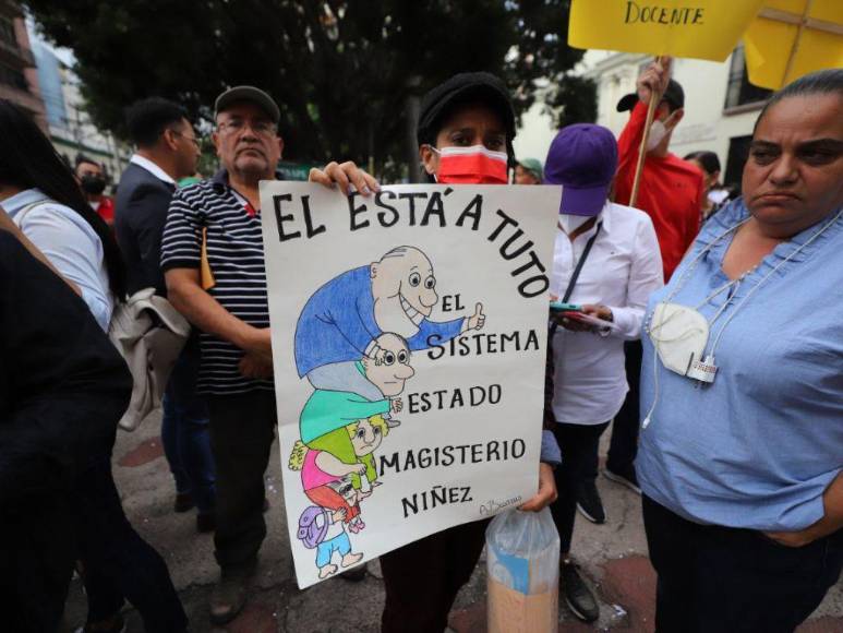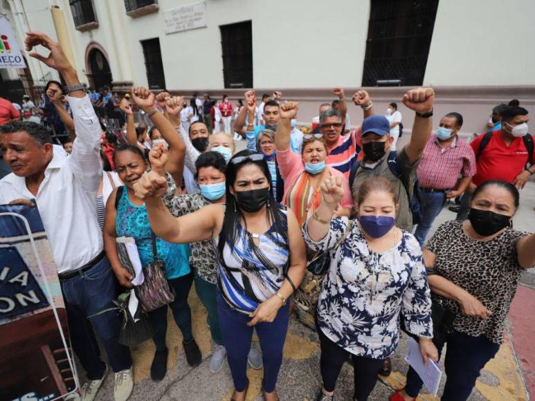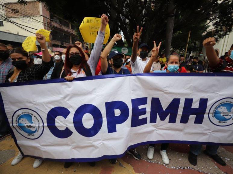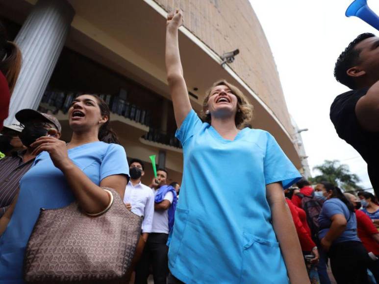 Miembros del Colegio de Profesores de Educación Media de Honduras (Copemh), la Asociación Nacional de Enfermeras y Enfermeros Auxiliares de Honduras (Aneeah) y otras organizaciones se encuentran en los bajos del Congreso Nacional para exigir a los diputados aprueben el Presupuesto General de la República 2023 y se cumplan con las promesas de reajuste salarial para el sector salud y educación. A continuación las imágenes.