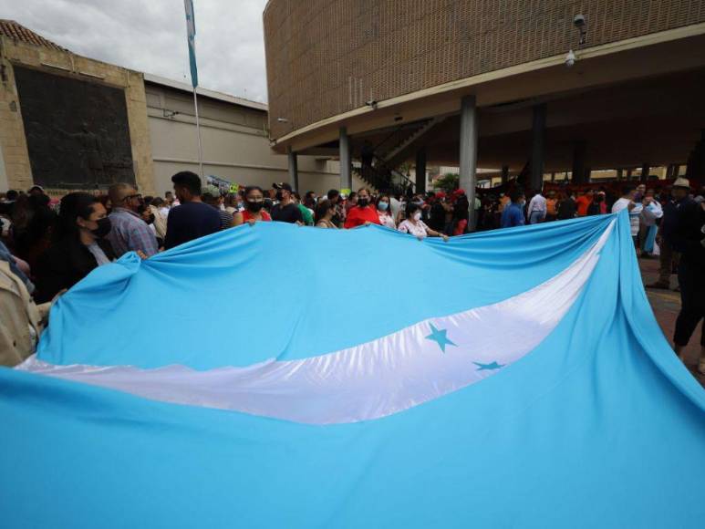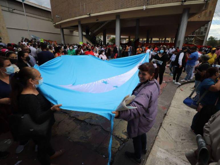 Asimismo hizó su llegada el Sindicato de Empleados del Servicio Público de la Educación de Honduras con el fin de velar la sesión legislativa que dé la aprobación del Presupuesto General 2023.