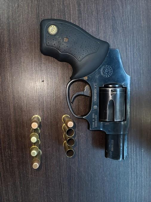 Al momento de efectuar el arresto al sujeto se le decomisó un arma de fuego tipo revólver con empuñadura de caucho, color negro, cinco (5) proyectiles sin percutir y tres (3) cartuchos percutidos.