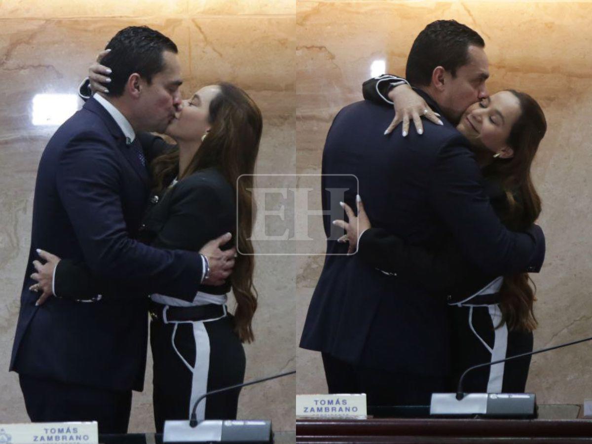 Con un tierno abrazo y un beso, Tomás Zambrano recibió a su esposa tras ser juramentado como presidente del Congreso Nacional. Aquí las fotos