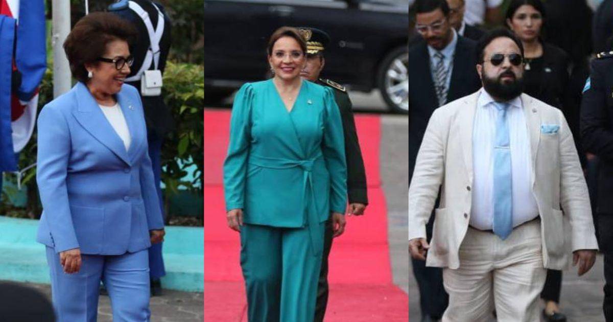 La presidenta del Poder Judicial, Rebeca Ráquel Obando, mostró un estilo igualmente refinado, con un traje azul claro, complementado con una camisa blanca, que denota un enfoque más clásico y sobrio.
