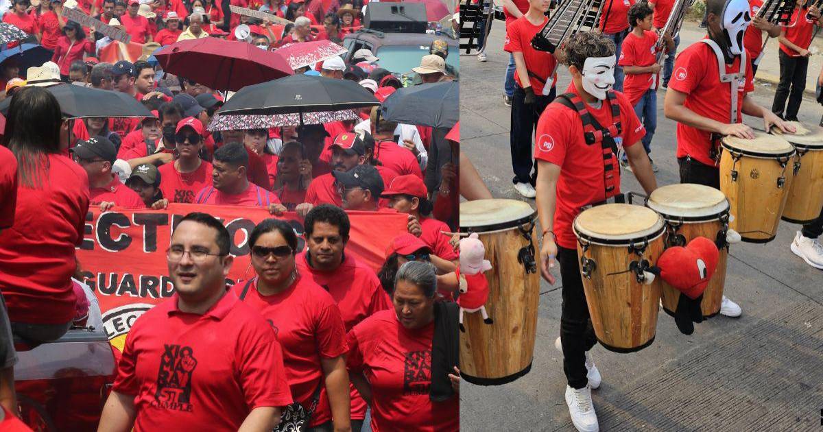 Por su parte, los colectivos claramente atendieron el llamado de su gobierno y se integraron a la manifestación con banderas y con ropa roja, alusiva a su partido. La comunidad LGTBI+ también desfiló por el llamado de la presidenta y del coordinador de Libre, Manuel Zelaya Rosales.