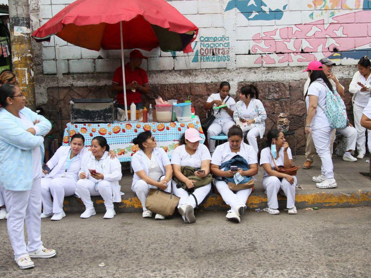 Este lunes, las enfermeras auxiliares se apostaron frente al Centro de Salud Alonso Suazo, en Tegucigalpa y en el Hospital Escuela estaban las licenciadas en enfermería.