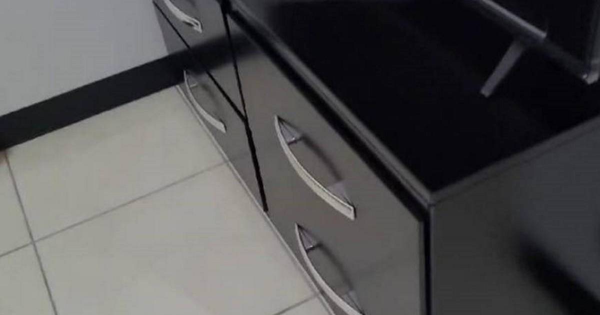 Una cómoda cama matrimonial con una fina cabecera de madera, dos almohadas, aire acondicionado, espejos, un Smart tv de 43 pulgadas sobre un moderno centro de entretenimiento color negro, una bocina bluetooh, microondas y un gabinete de madera tipo bar con lavatrastos incluido conformó la primera parte de una misteriosa habitación construida en el Inami.