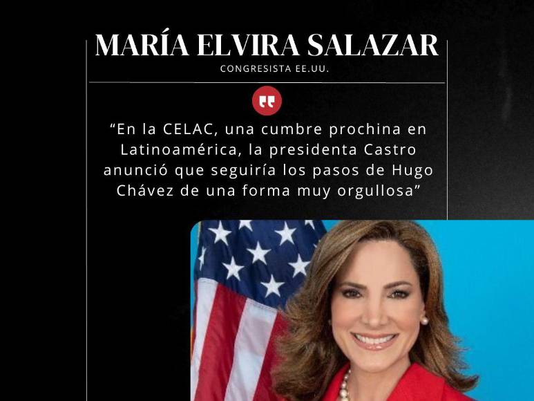 La congresista republicana María Elvira Salazar arremetió contra el gobierno de la presidenta Xiomara Castro, asegurando que ella es solo el títere de su esposo, Manuel Zelaya, durante la audiencia titulada “La relación bilateral entre Estados Unidos y Honduras y el análisis del gobierno socialista de la presidenta Xiomara Castro” celebrada en Estados Unidos. Estas fueron sus explosivas frases.