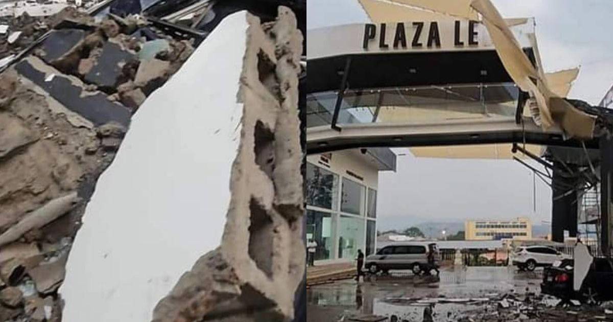 Una moderna plaza comercial resultó seriamente afectada a raíz de la lluvia con granizo.