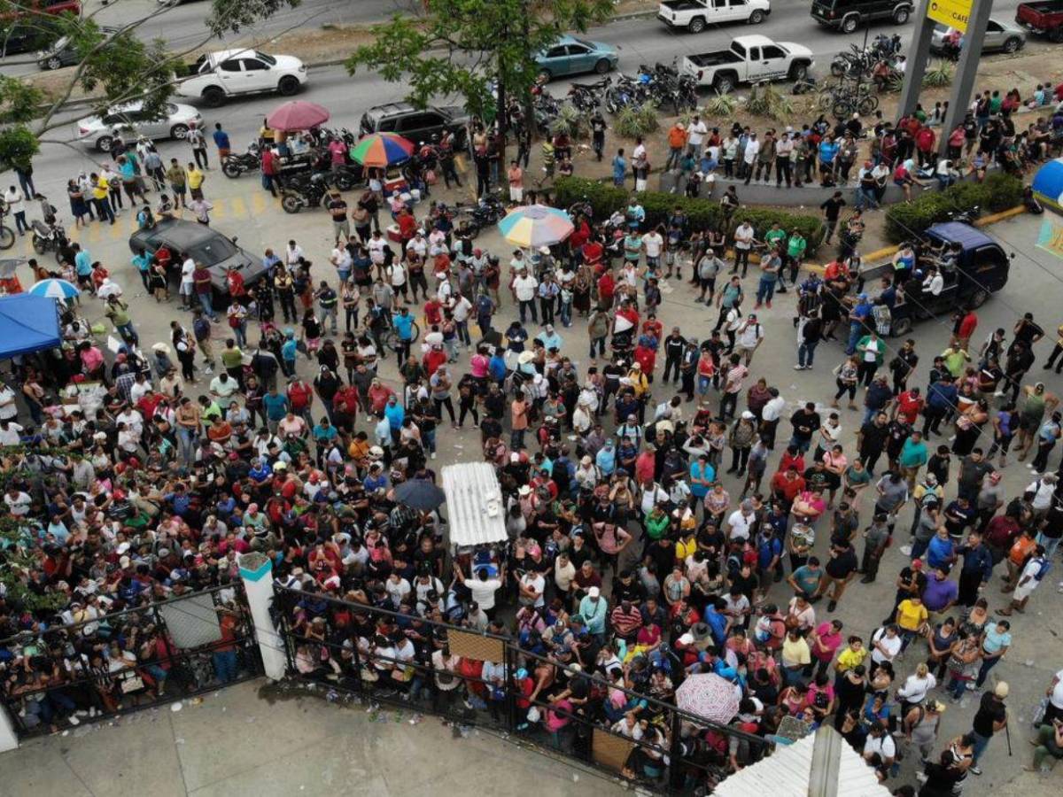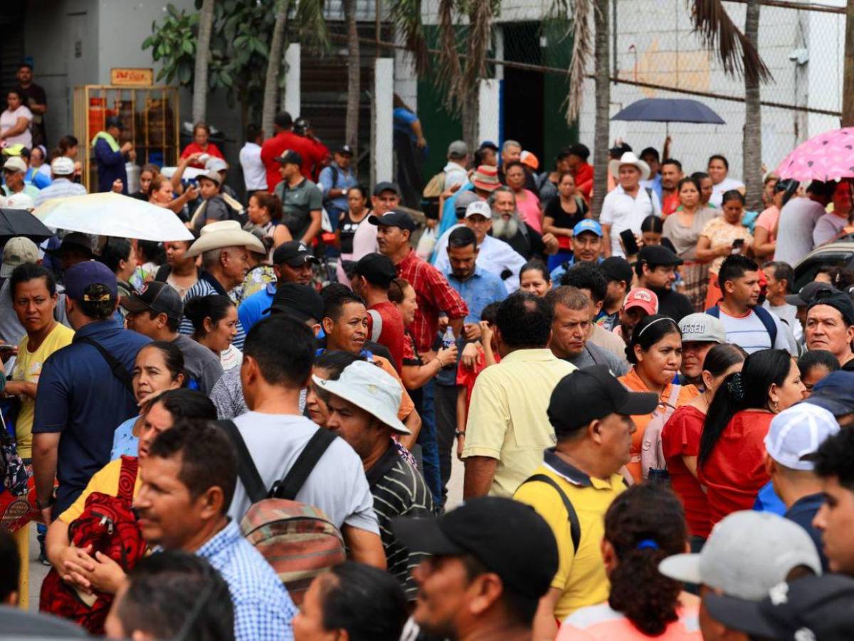 Solo en San Pedro Sula, la fila de personas que esperan su dinero se extiende por varias cuadras, con la esperanza de que hoy sea el día en que puedan recuperar sus ahorros.