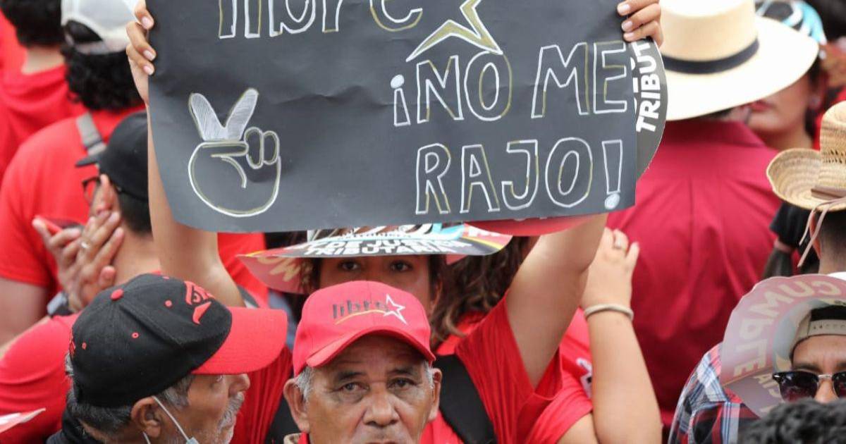 ”Soy Libre ¡No me rajo!”, son algunos de los mensajes que se leen en la movilización convocada por Libre para que sus simpatizantes muestren su apoyo hacia las decisiones del gobierno de Xiomara Castro.