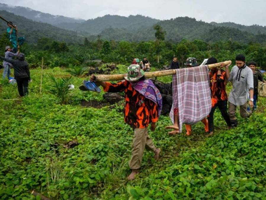 La región de Luwu del Norte suele ser propicia a este tipo de catástrofes naturales. Rescatistas ponen a salvo a una persona que sobrevivió a las inundaciones. Foto: AFP 17/07/2020 - 00:006 / 16 -