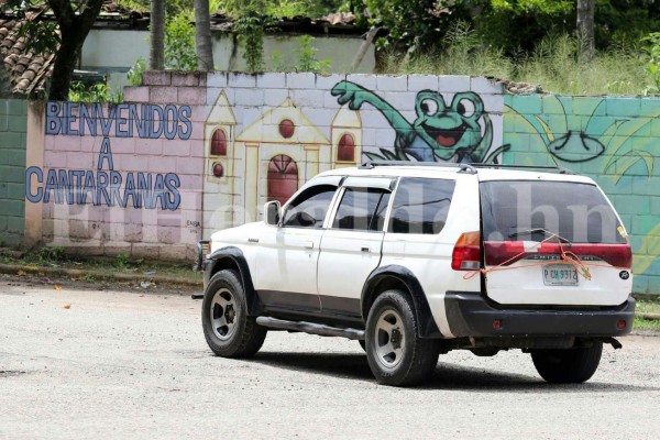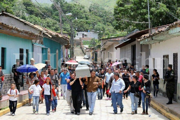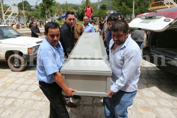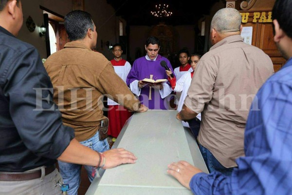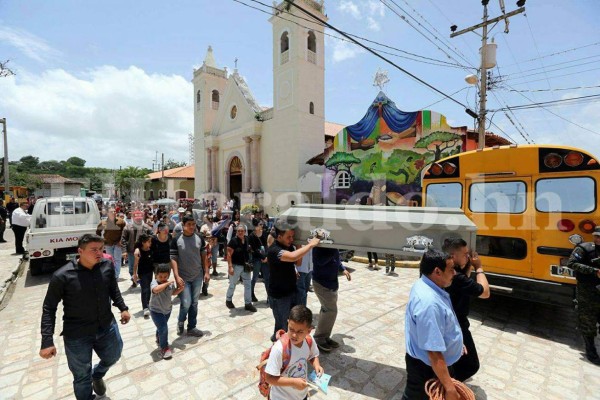 A las 10:20 minutos llegó al parque de Cantarranas la caravana de vehículos que acompañaba el féretro y acto seguido se realizó la misa de cuerpo presente en la iglesia católica del lugar. Foto: Marvin Salgado / EL HERALDO.