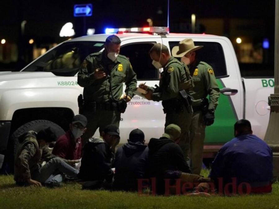 Un vehículo de la Oficina de Aduanas y Protección Fronteriza de EE. UU. Se ve junto a los migrantes después de que fueron detenidos y puestos bajo custodia. 22/03/2021 - 00:003 / 14 -