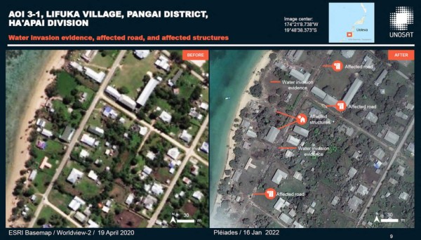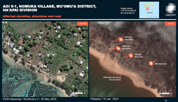 En su primer comunicado desde la erupción, el gobierno indicó que una aldea fue completamente arrasada por la ola generada por la erupción y otras apenas disponen de algunas casas en pie. 19/01/2022 - 00:003 / 15 -