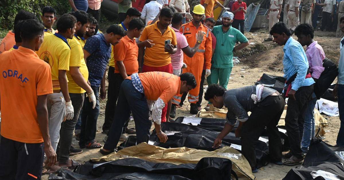 Vagones retorcidos se apilan unos encima de otros y líneas de cadáveres yacen junto a las vías en el este de India, donde los primeros rayos de sol muestran el horror de uno de los accidentes ferroviarios más mortíferos en la historia del país.