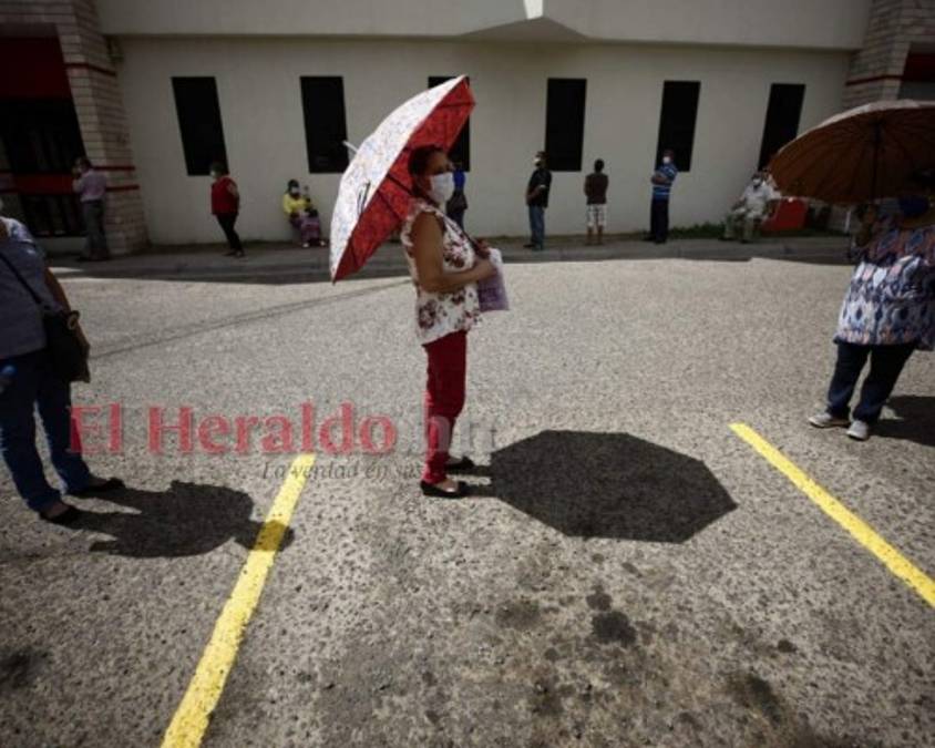 FOTOS: Bajo inclemente sol, hondureños hacen largas filas en bancos