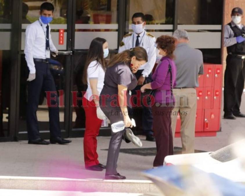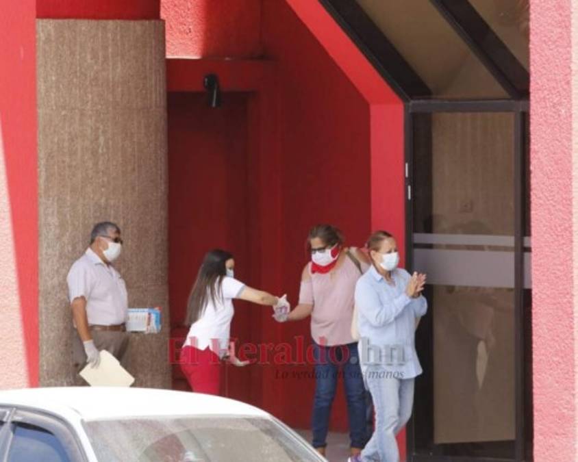 Por eso, cada hondureño que ingrese a las sucursales debe desinfectar sus zapatos, manos y ropa. Fotos: Emilio Flores| Alejandro Amador| EL HERALDO 26/03/2020 - 00:006 / 14 -