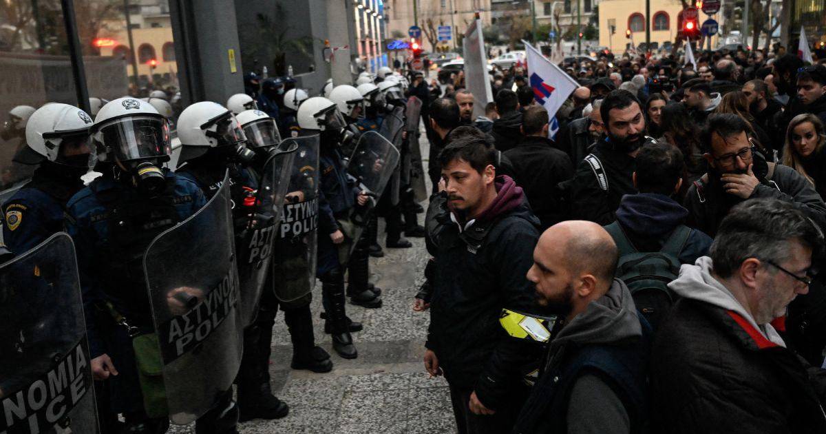 Cerca de 700 manifestantes se congregaron frente a la sede del operador ferroviario Hellenic Train en Atenas para expresar su indignación ante la peor catástrofe ferroviaria de la historia del país.