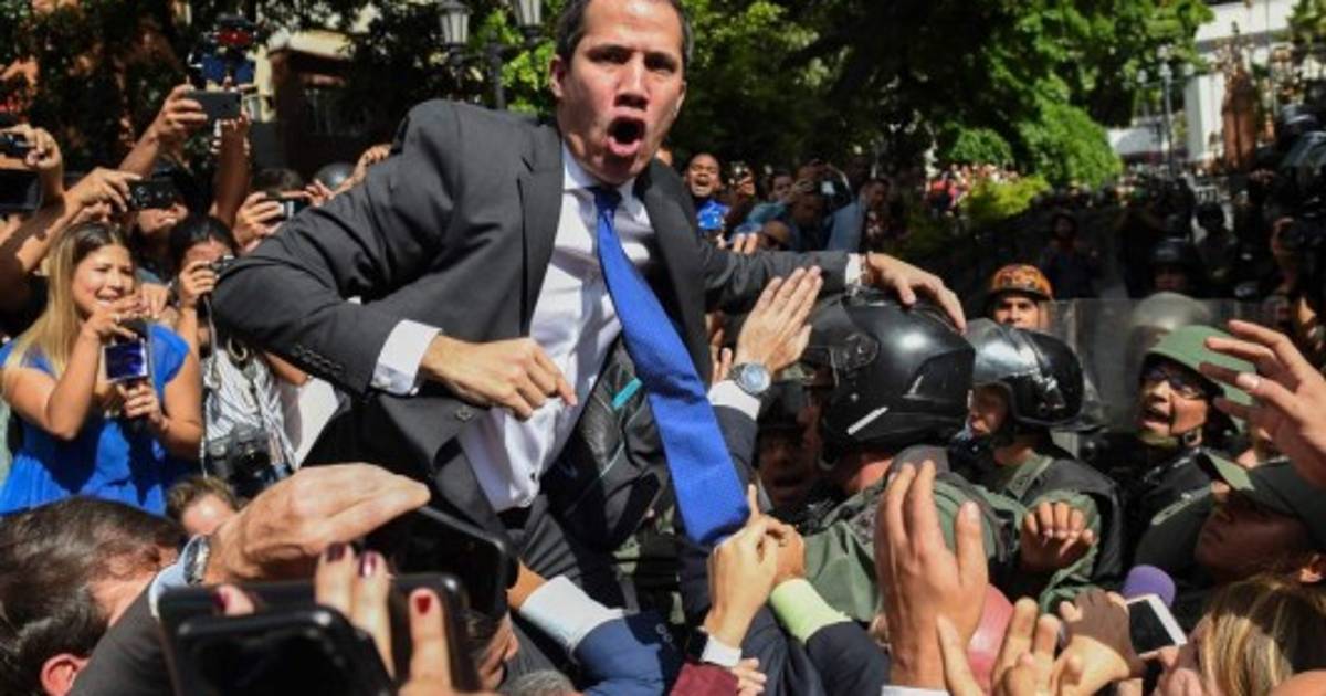 La caótica llegada de Juan Guaidó al Parlamento para su juramentación