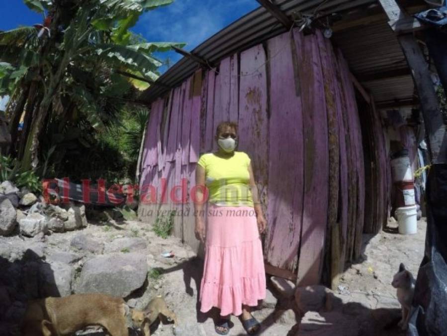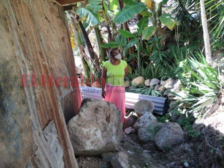 Ana Sánchez (60), recuerda que cuando Eta y Iota hicieran que lloviera durante horas consecutivas, ella y sus hijas se escaparon de morir de milagro. El cerro donde viven, en la colonia El Edén de la capital, comenzó a ceder y causó que sus suelos se hundieran y agrietaran y que enormes rocas se desprendieran cayendo en sus patios... afortunadamente en sus patios, y no sobre los vulnerables techos. Foto: Aarón Canales/ EL HERALDO 16/12/2020 - 00:003 / 18 -