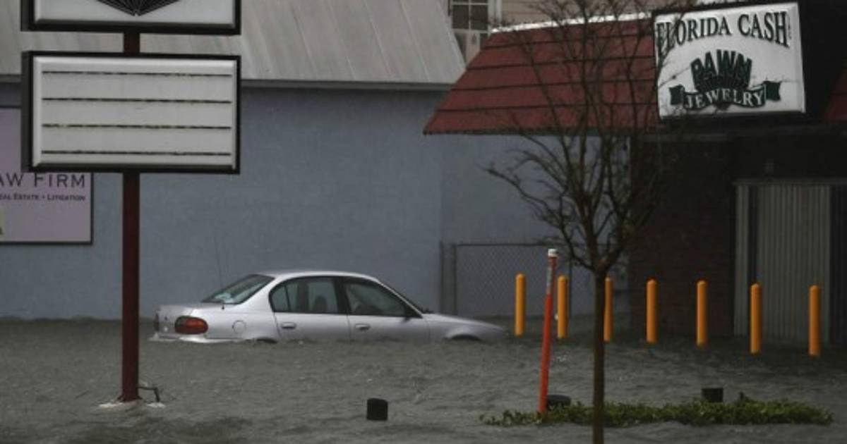 Un carro flota en un estacionamiento inundado por Matthew en St Augustine, Florida. /Foto AFP/ 07/10/2016 - 00:001 / 11 -