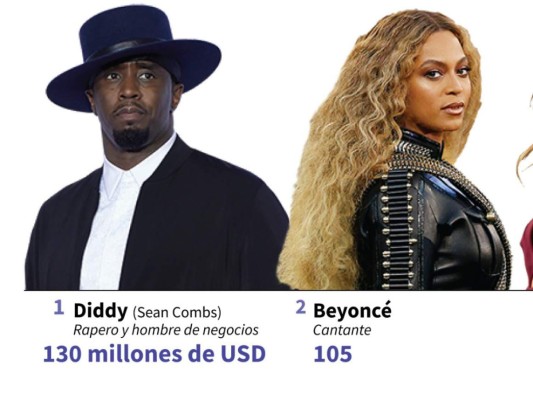 Diddy, de 47 años, cuyo nombre real es Sean Combs y que al inicio de su carrera era conocido como Puff Daddy, ganó 130 millones de dólares entre junio de 2016 y junio de 2017, de los cuales 70 millones provinieron de la venta de un tercio de su marca de vestimenta Sean John. Foto: AFP 13/06/2017 - 00:002 / 11 -