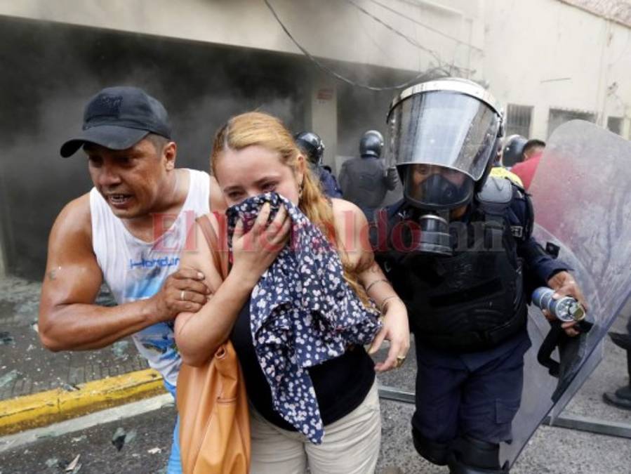10. Rescatados del caos: Un grupo de empleados de la Alcaldía Municipal del Distrito Central fueron rescatados por la Policía Nacional y personas particulares ya que presentaban problemas respiratorios al inhalar grandes cantidades de humo después que personas que se manifestaban en el centro de la capital incendiaron las instalaciones de la Alcaldía ubicadas en el centro de la ciudad. Foto: Marvin Salgado. 30/12/2019 - 00:0011 / 11