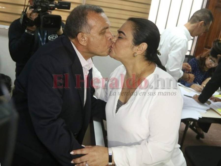 8. Un beso ante la justicia: El expresidente Porfirio Lobo Sosa saludó en varias ocasiones con un apasionado beso a su esposa Rosa Elena Bonilla al llegar a las audiencias que se desarrollaron en los juzgados anticorrupción ubicados en la avenida La Paz de Tegucigalpa. El exmandatario siempre apoyó a su esposa cada vez que se prestaba a los juzgados. Al final fue condenada a 58 años de cárcel. Foto: Efraín Salgado. 30/12/2019 - 00:009 / 11 -