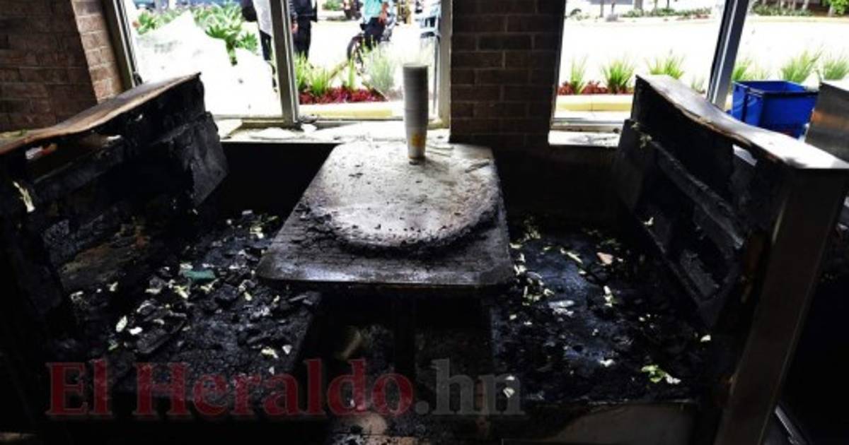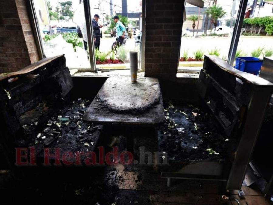 Los restos carbonizados de una mesa y bancos en un restaurante de comida rápida incendiada la víspera por saqueadores durante una protesta. Foto: Orlando Sierra/Agencia AFP. 20/06/2019 - 00:001 / 8 -