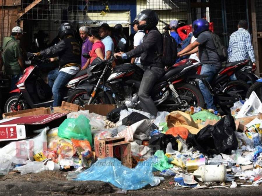 La gente pasa el 20 de junio de 2019 por montones de basura arrojadas la víspera en las calles de Tegucigalpa durante una protesta. Foto: Orlando Sierra/Agencia AFP. 20/06/2019 - 00:006 / 8 -