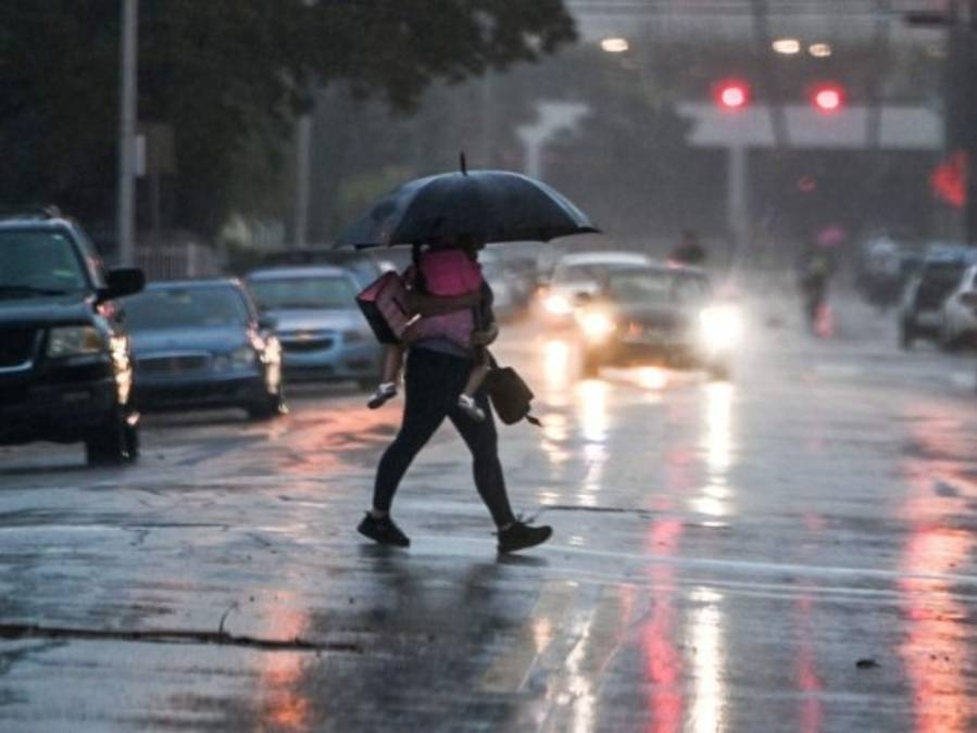 Algunas personas que transitaban por las calles de Miami tuvieron que buscar refugio ante la implacable lluvia. 09/11/2020 - 00:004 / 17 -