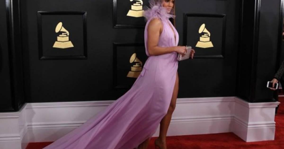 Jennifer López llegó con un vestido color lila que no le quedó nada bien. Foto: AFP 13/02/2017 - 00:001 / 16 -
