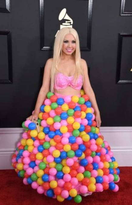 Girl Crush y su estrambótico vestido de pelotas. Foto: AFP 13/02/2017 - 00:0016 / 16
