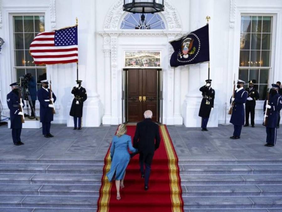 Joe Biden y Jill Biden suben las escaleras cuando llegan al pórtico norte de la Casa Blanca, ya convertidos en la pareja presidencial. 21/01/2021 - 00:005 / 17 -