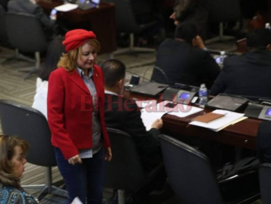 La diputada Linda Frances Donaire Portillo del partido Libertad y Refundación (Libre) llegó al estilo 'caperucita roja' solo que con boina. (Foto: El Heraldo Honduras) 15/03/2018 - 00:003 / 8 -