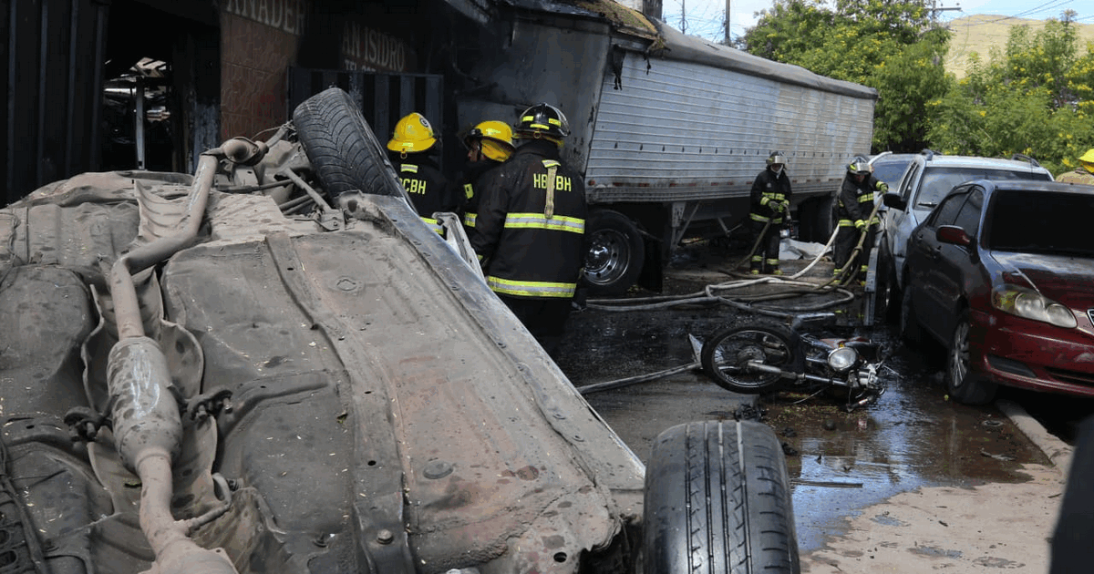 Una escena de desastre provocó el choque de una rastra contra una panadería en la colonia El Carrizal de la capital de Honduras. Las imágenes captadas por el fotorreportero de El Heraldo muestran escombros de al menos siete vehículos que quedaron destruidos, el voraz incendio en la panadería y los cadáveres de dos víctimas.