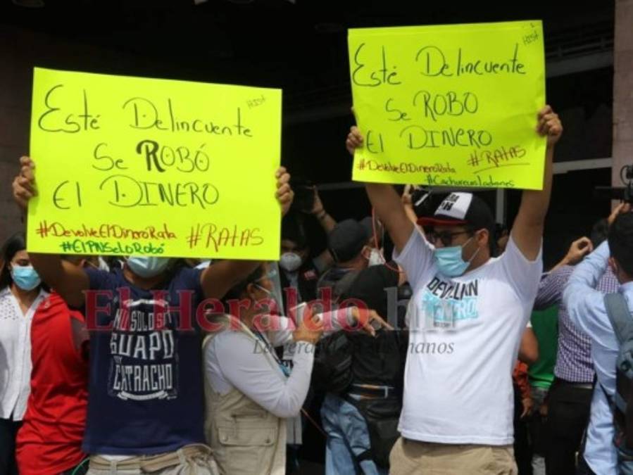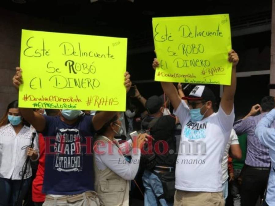 Sin embargo, al igual que los periodistas, un grupo de ciudadanos indignados también se apostó en los alrededores para protestar contra quien consideran un 'ladrón', 'asesino' y 'corrupto'. Fotos: Estalin Irías/ EL HERALDO. 30/09/2020 - 00:005 / 13 -
