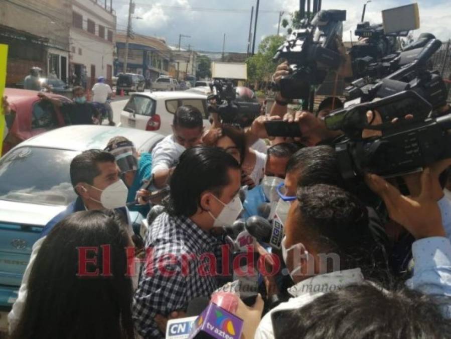 Decenas de periodistas se acercaron en masa a consultarse sobre el proceso, pero Bográn solo tenía un objetivo: entrar a la Atic y librarse del caos dirigido a su persona. Fotos: Estalin Irías/ EL HERALDO. 30/09/2020 - 00:006 / 13 -