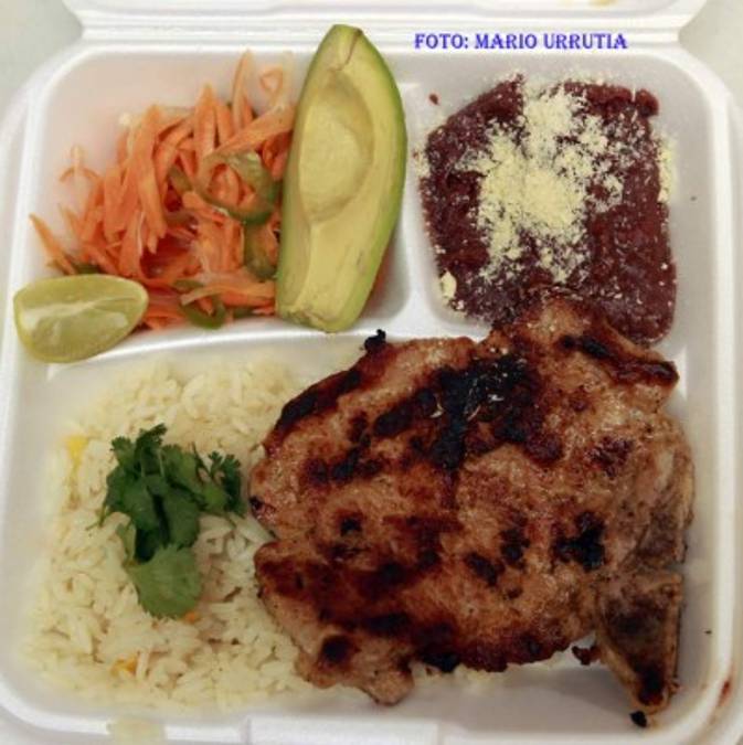 Comedor Mirna, Chuleta de cerdo a la plancha, frijoles fritos con queso rallado, arroz con maíz, aguacate y encurtido. (Foto: Mario Urrutia) 15/08/2015 - 00:008 / 11 -