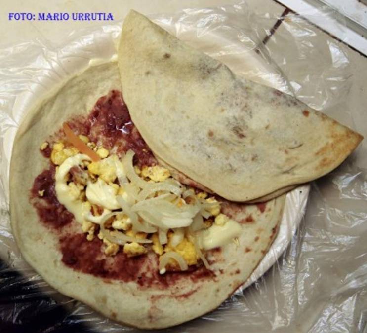 Golosinas Lucio, Baleadas preparadas con tprtilla de harina al comal, frijoles, huevo picado, mantequilla y queso rallado. (Foto: Mario Urrutia)