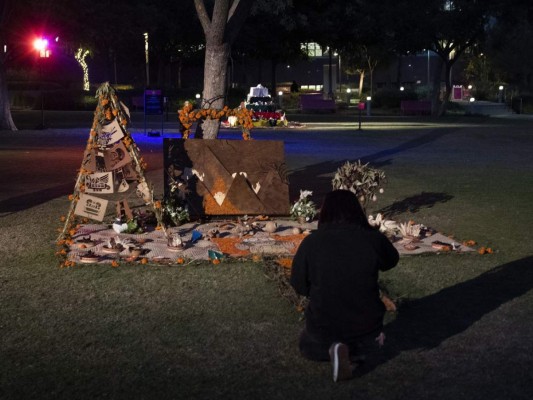 Junto con sus hermanos, la mujer puso una ofrenda en memoria de su madre Rosa María, quien murió en junio a los 64 años presuntamente de covid-19. 01/11/2020 - 00:007 / 16 -