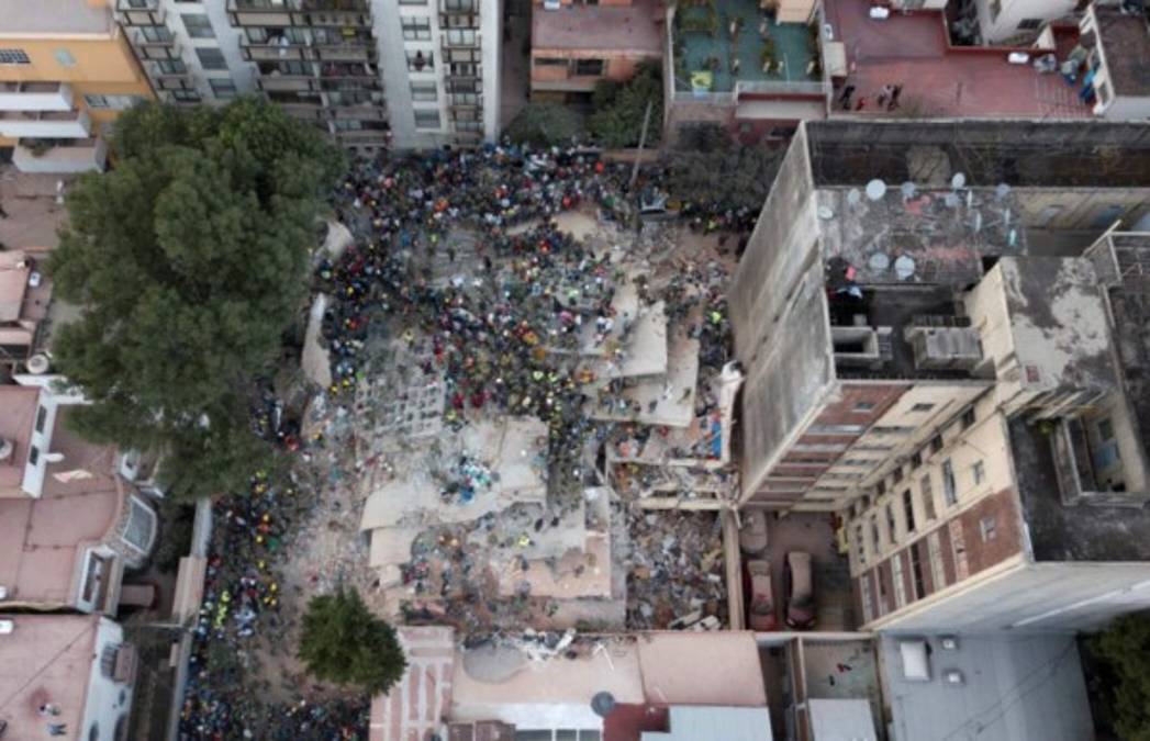 5. Los rescatadores israelíes buscan sobrevivientes en un edificio aplanado en la Ciudad de México el 21 de septiembre de 2017, dos días después de un fuerte terremoto en el centro de México. Un poderoso terremoto de 7,1 sacudió la ciudad de México el martes, causando pánico entre los 20 millones de habitantes de la megalópolis en el 32 aniversario de un devastador terremoto de 1985. / AFP / Yuri CORTEZ. 21/09/2017 - 00:005 / 10 -