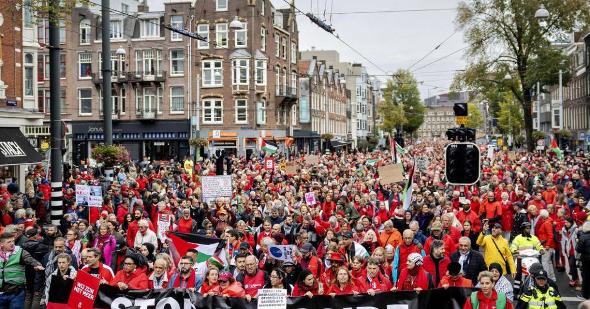 250 mil personas llenan las calles de rojo en Ámsterdam para exigir medidas contra Israel