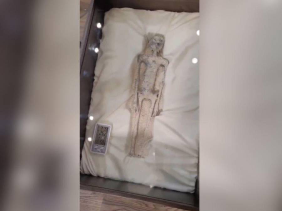 Con huevos en su abdomen y tres largos dedos: así son los “extraterrestres” presentados en Congreso de México